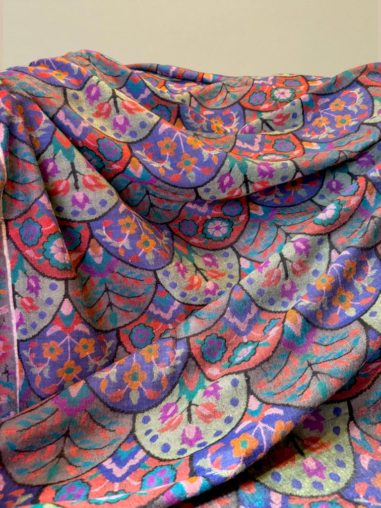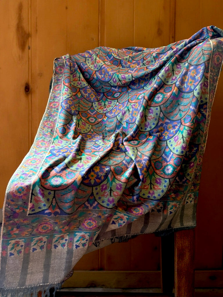 This exquisite Kani pashmina shawl is a masterpiece of intricate artistry. Handwoven in Kashmir, its delicate floral patterns and vibrant colors create a captivating tapestry of beauty. The soft, luxurious feel of the pashmina wool adds a touch of elegance and warmth.